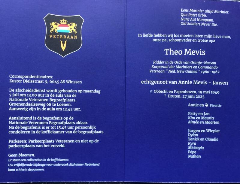 28 juni is ons het trieste nieuws te oren gekomen dat Theo Mevis is overleden